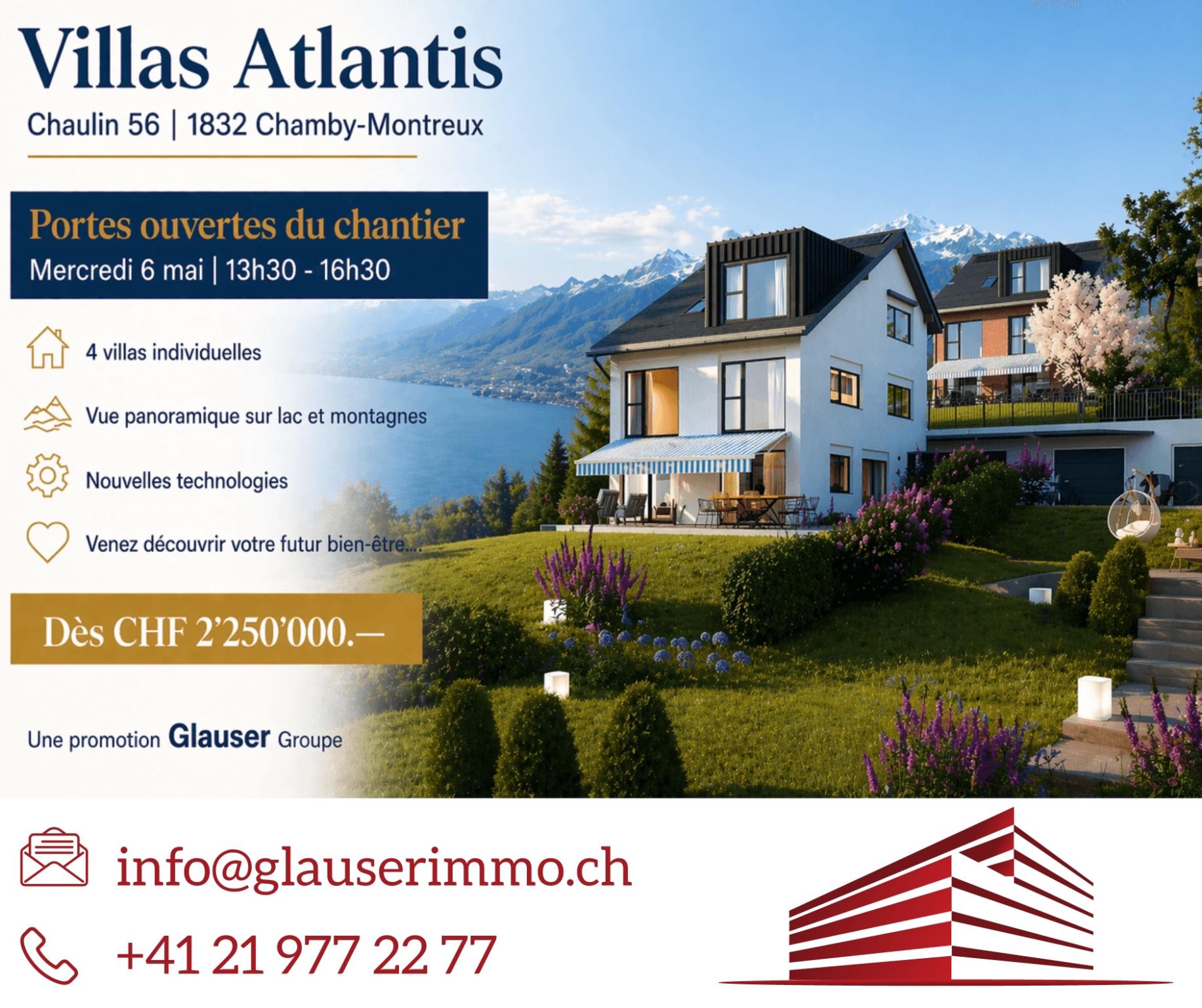 Nouvelle promotion « Villas Atlantis » composée de 4 villas individuelles de 6,5 pièces en cours de construction sur la commune de Montreux.
