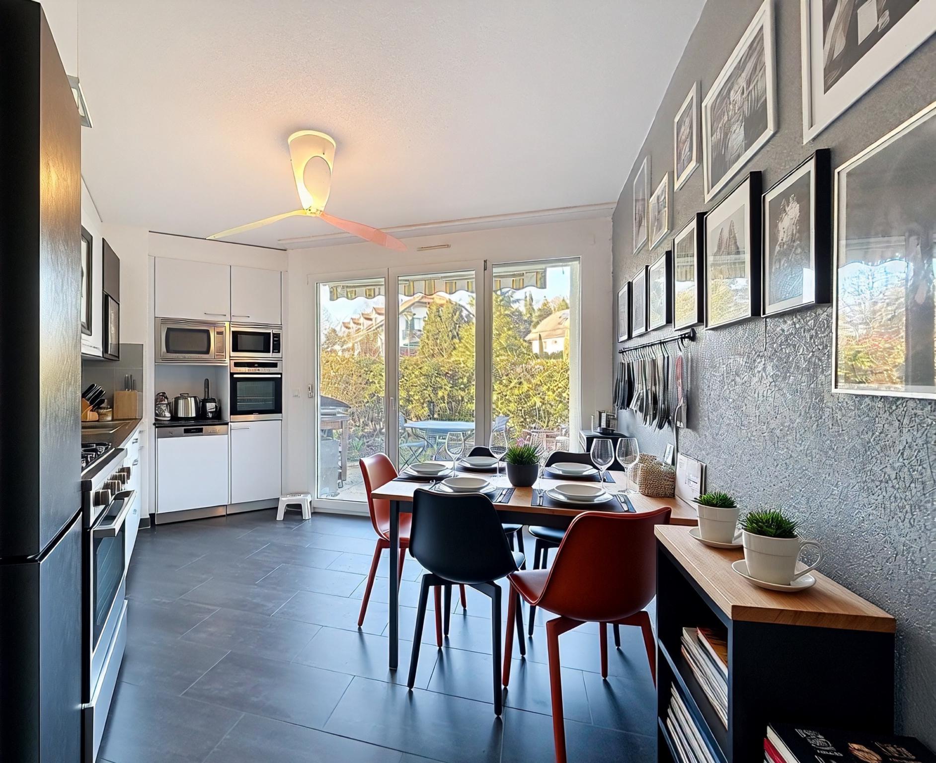 • Cuisine agencée avec accès direct à une terrasse et au jardin